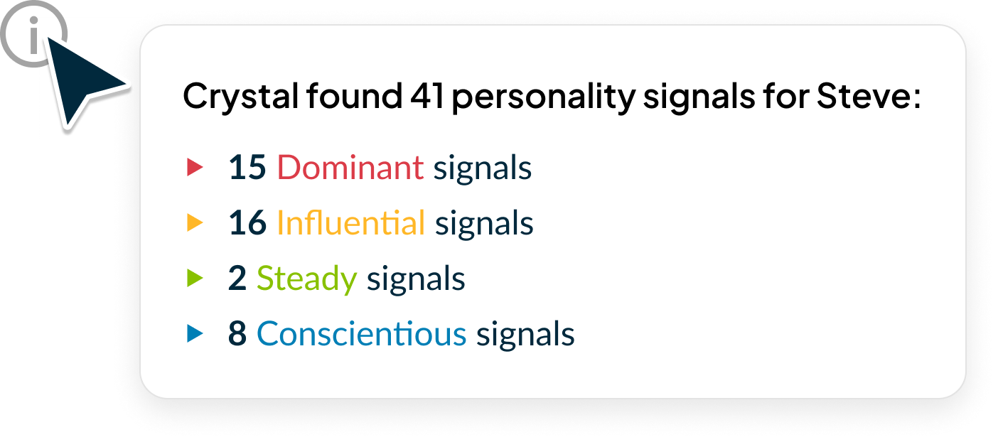 Scale emotional intelligence and excellent communication skills across your entire business. Crystal’s personality data is derived from a predictive model built around two main components: