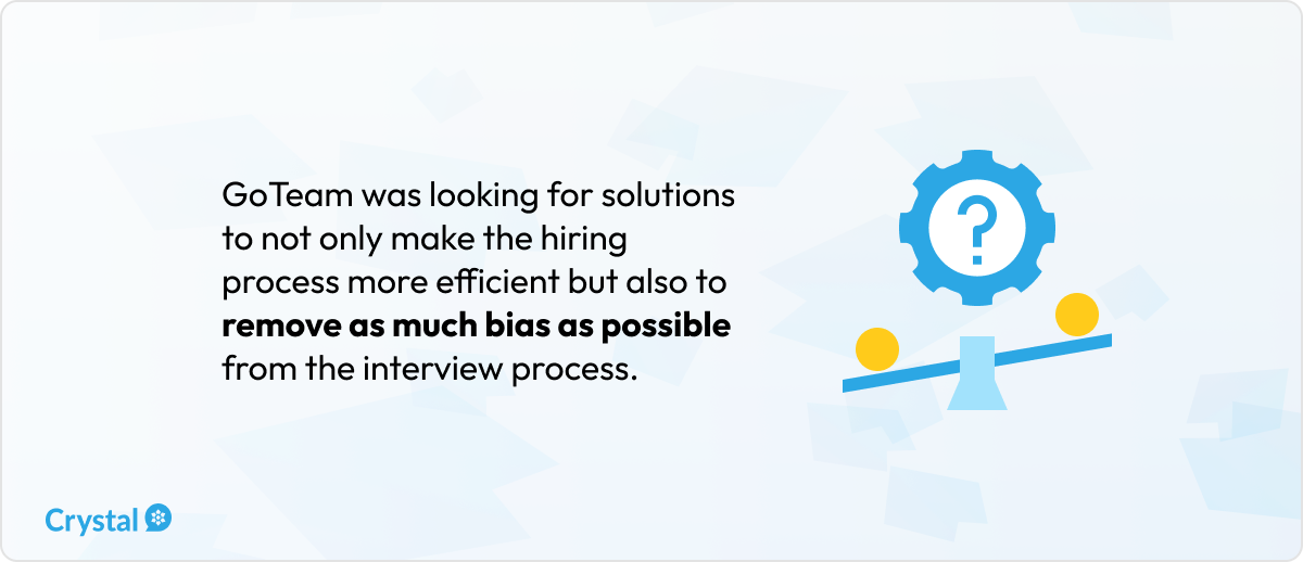 Before Crystal, GoTeam was noticing that bias was playing too big of a role as their recruiters sought out new talent. Crystal has given recruiters from GoTeam actual data to inform their hiring decisions — giving them a more holistic view of any given candidate before moving them to the next phase of interviews. Crystal also provides specific, personality-based insights on candidates to guide interview questions, ensuring no stone is left unturned.