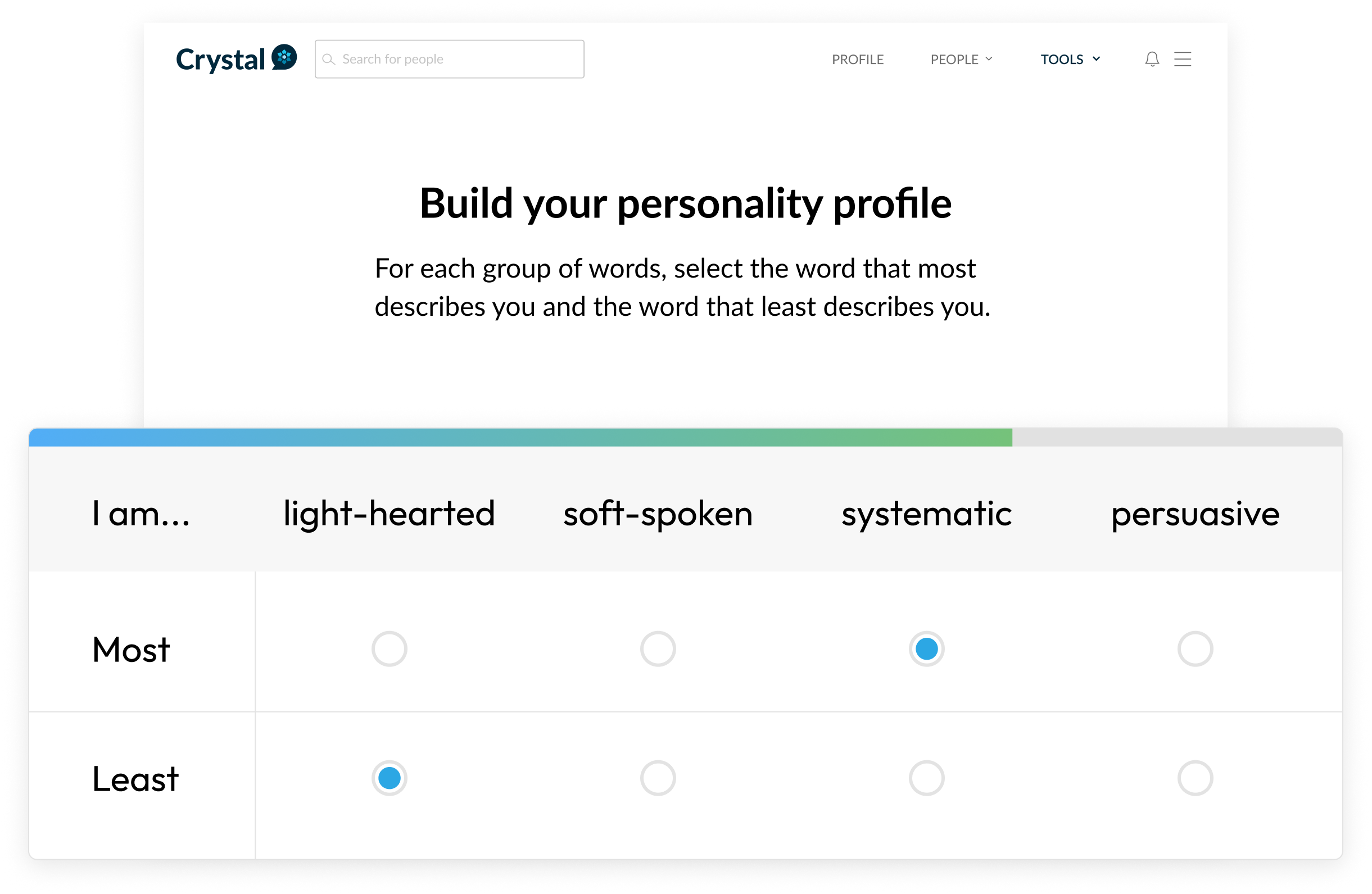 Crystal equips people leaders with personality insights into their team members so leaders can more effectively communicate with team members in their natural style.