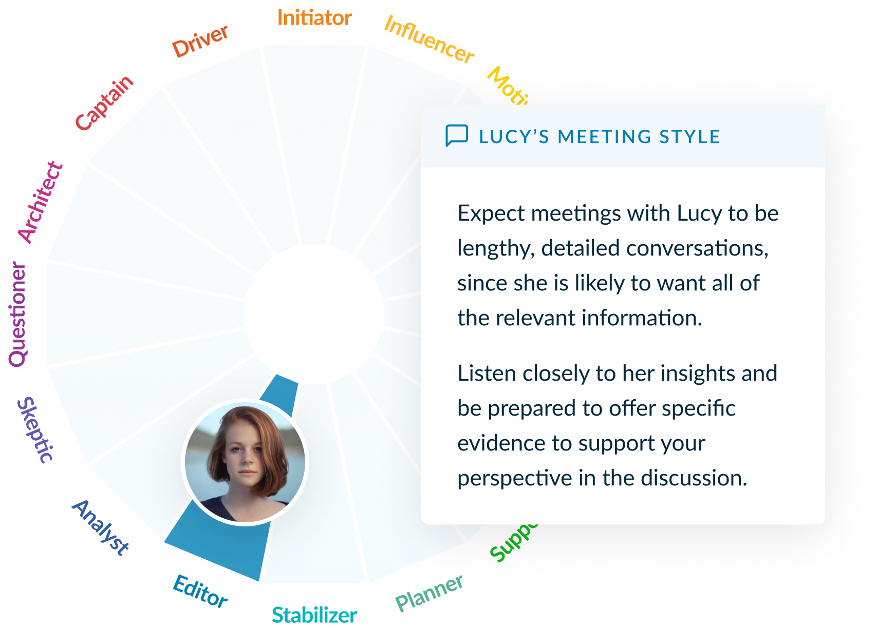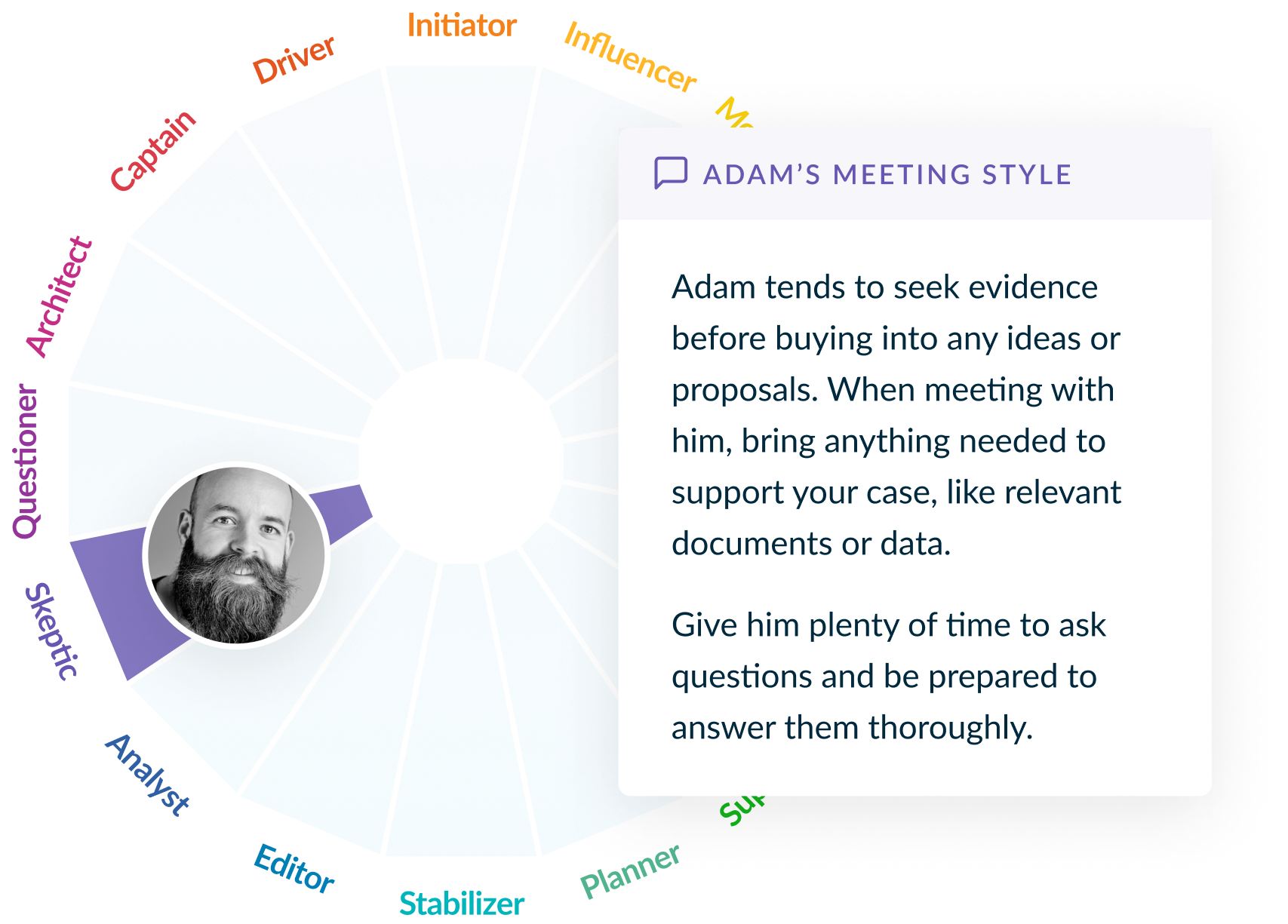 Custom playbooks guide how to best communicate with different personalities, whether they're for internal conversations or client-facing meetings.