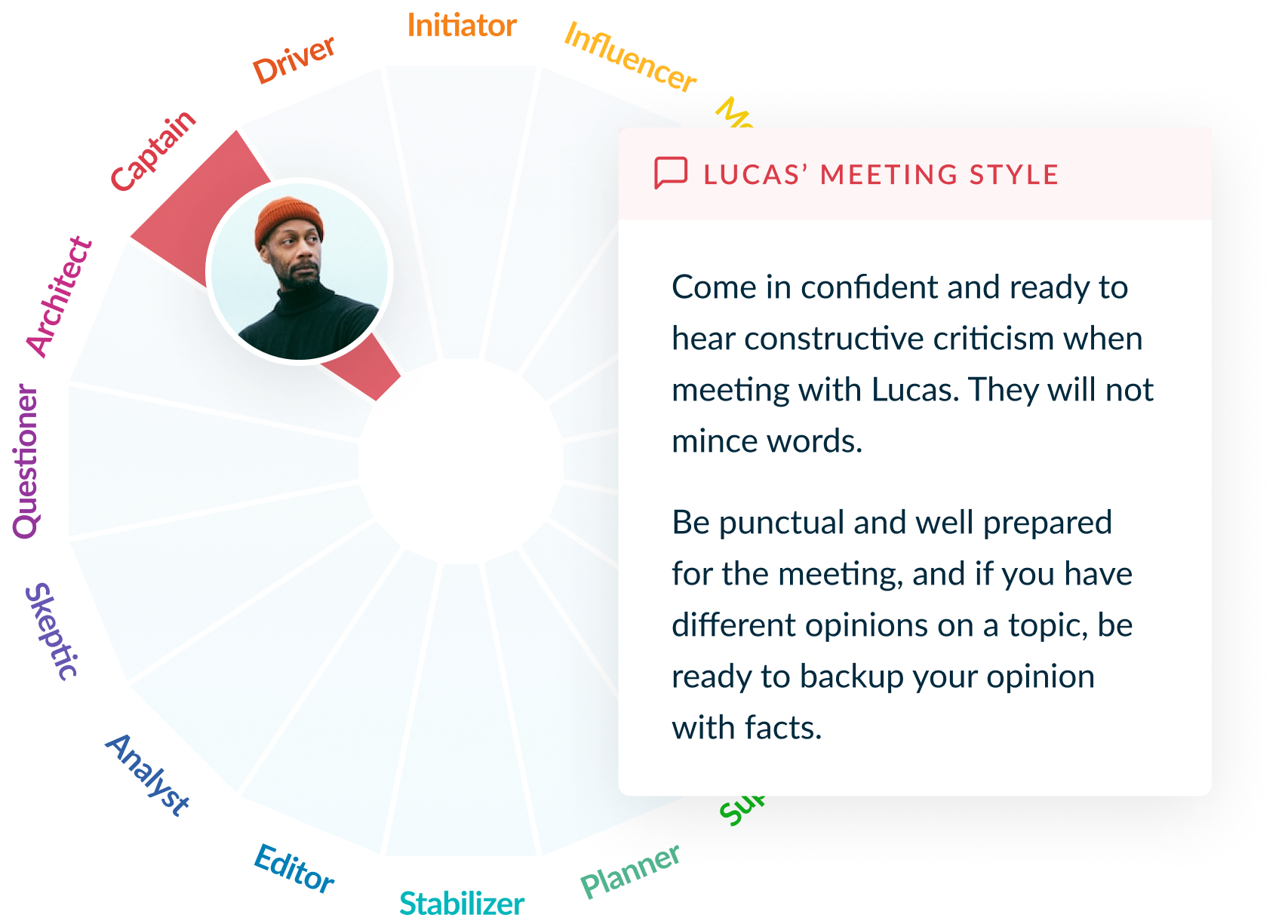Custom playbooks guide how to best communicate with different personalities, whether they're for internal conversations or client-facing meetings.